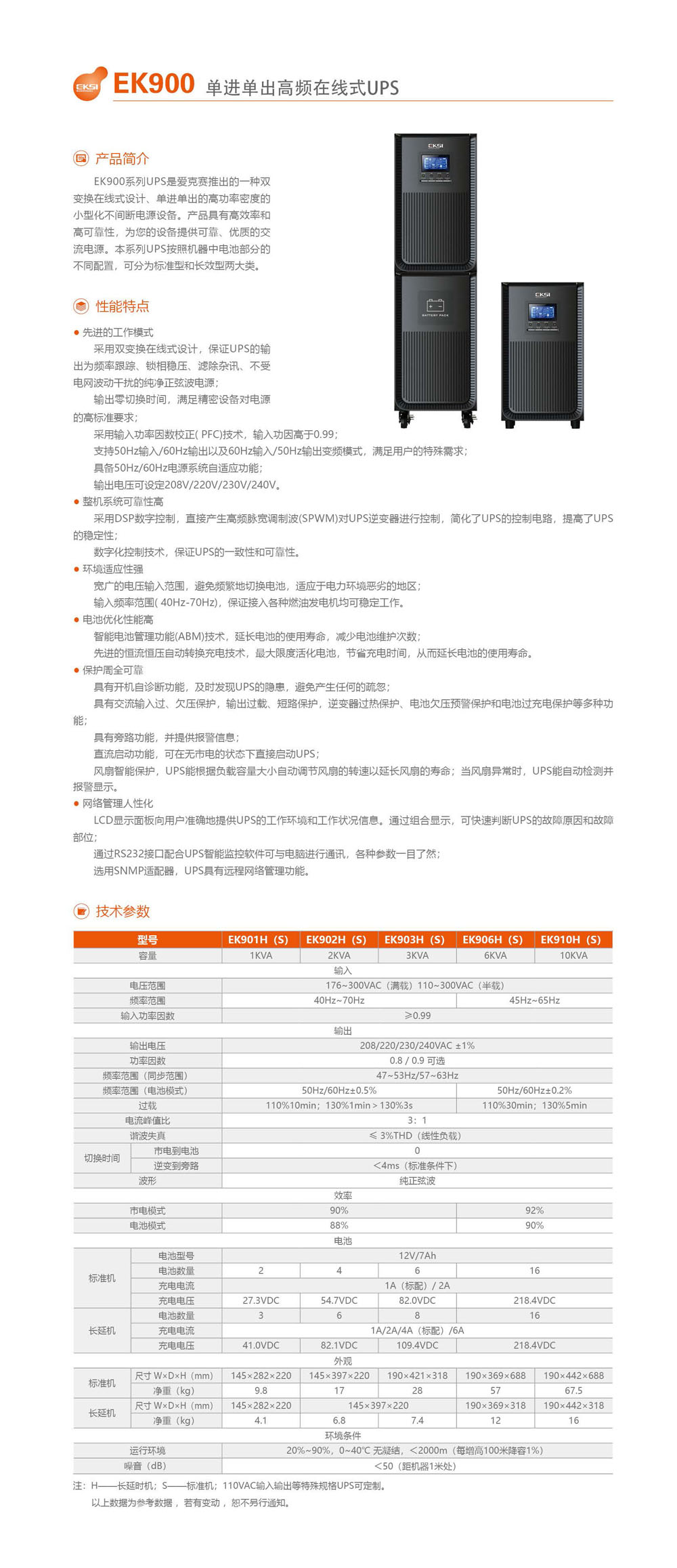 EK900RT系列采用雙轉換純在線式架構設計,單進單出的塔式不間斷電源設備。能有效解決電源問題,對電網出現(xiàn)的斷電、電壓過高或過低,浪涌電壓、諧波失真、雜波干擾等狀況都可以提供良好的解決 。