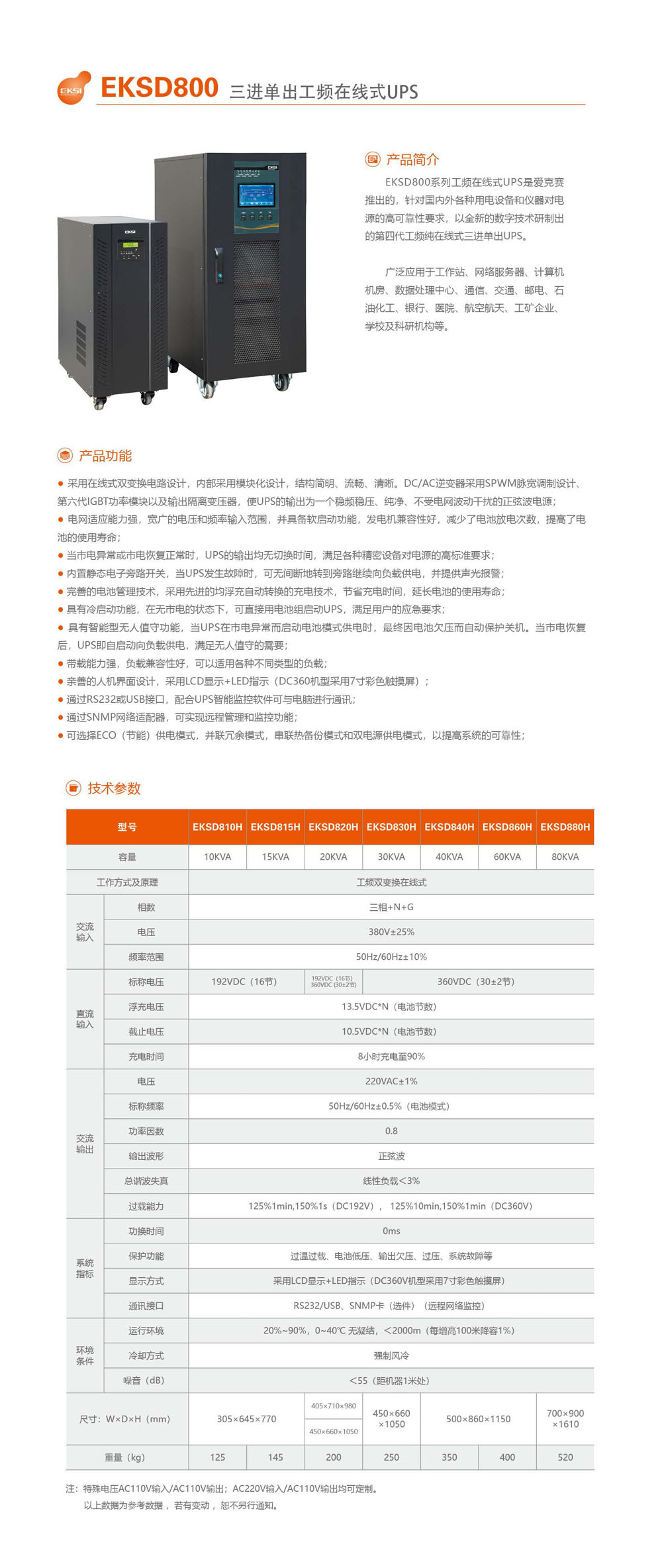EKSI愛克賽全系列電源產(chǎn)品——愛克賽EKSD800系列塔式三進單出工業(yè)級工頻在線式UPS電源